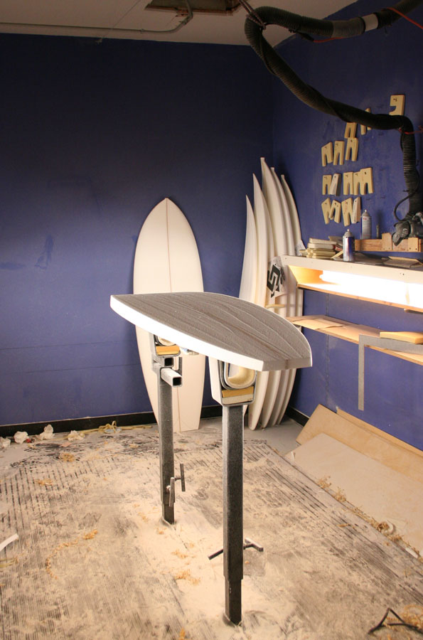 今日はシェーン・ベッシェンのボードをシェイプ中のメイヘムを撮影。