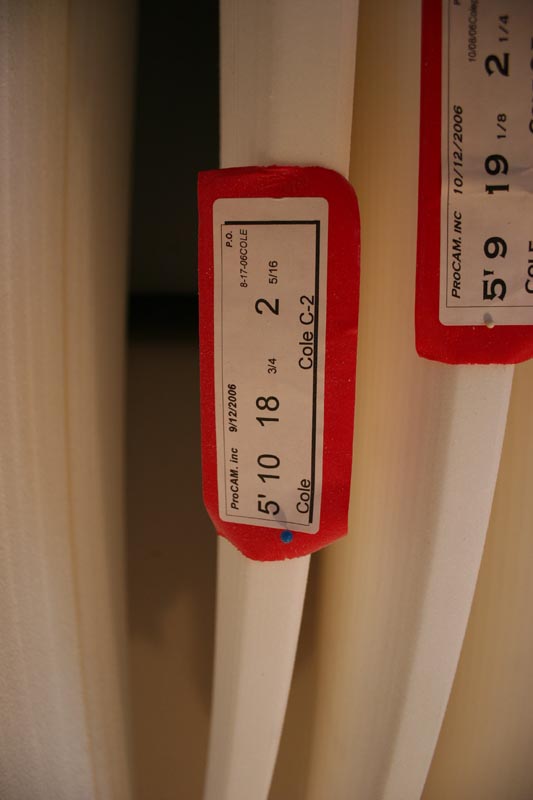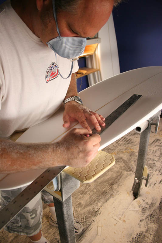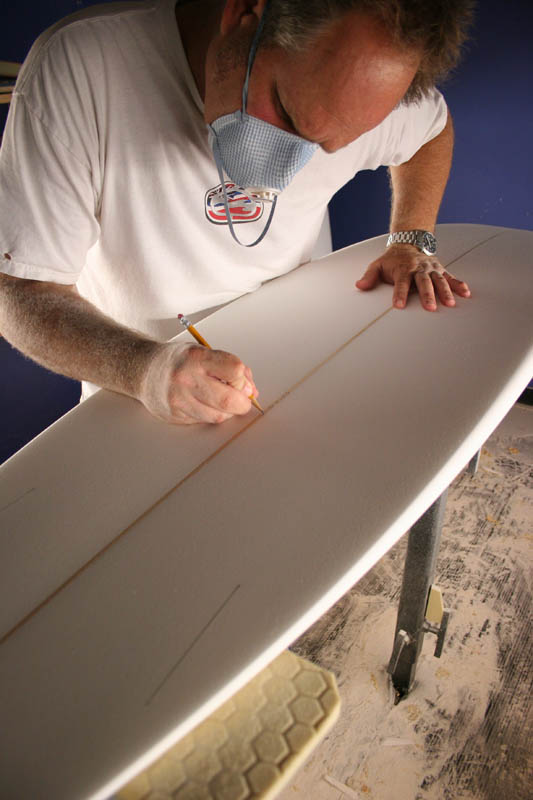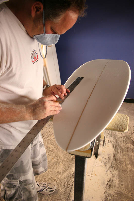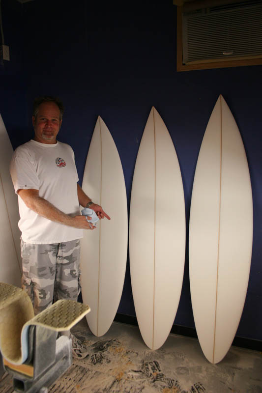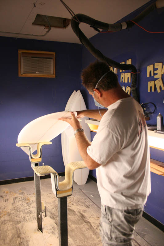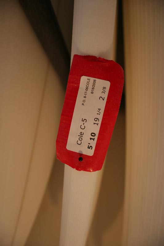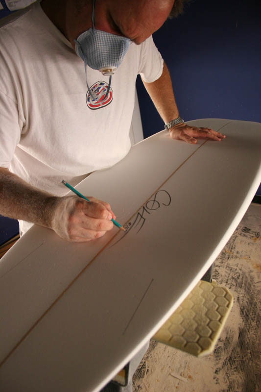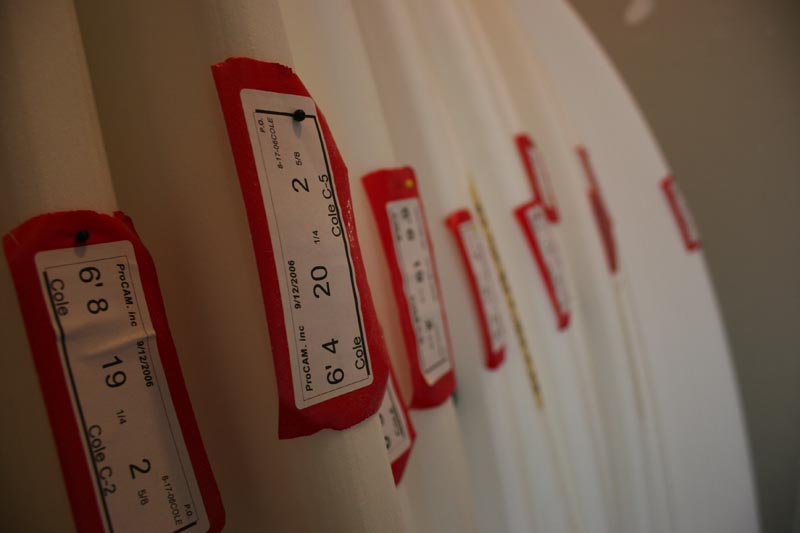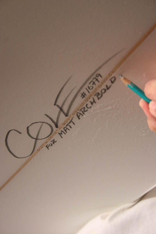 本日、コールのシェイプルームに行くと、なんとアーチのノースショア用ボードをシェイプ中。