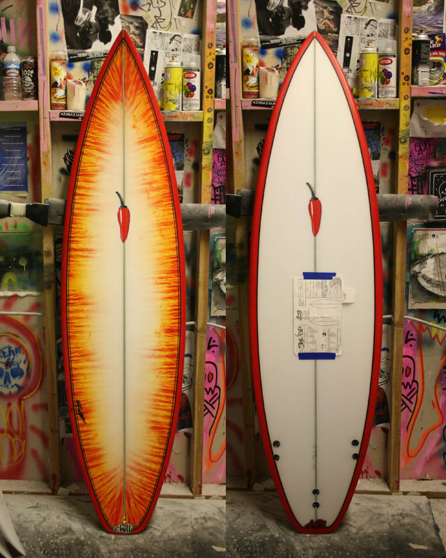 船木日本用のためにシェイプしたHPS改造のスワロウテイルモデル。ジャンクな波から素晴らしい波までをオールラウンドにカバー。実際のスペックよりレイルで肉をそいであるので、軽快な走りをします。~61kg中級、~63kg上級者、65kgのプロサーファーに。