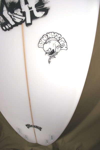 実はこのボードのバランスとレイル形状が多くのプロライダーに大好評で、先日のトラッソルズでのWCTでクリス・ワードやアンディ・アイアンズらが乗っていたボードはロゴはSD2ですが、テンプレートは実はワサビなんだよ、とメイヘム本人が言っていました。