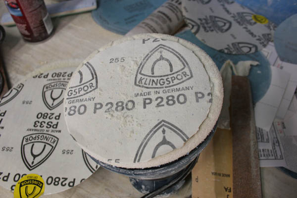 この時にボードを水でしめらせてサンディングするとサンドペーパーのめに粉がつまりづらく、非常にキメ細かく仕上がるようです。