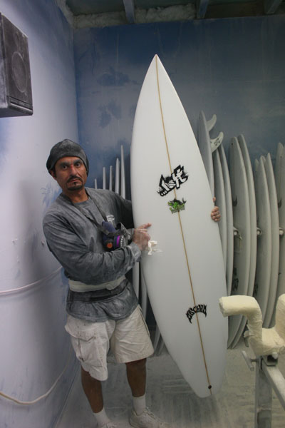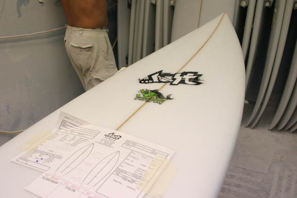 シェイパー以外にもカルロスのようなサンダーのサインがボードに入っていてもいいかも?ということすら感じるほどの大変な作業でした。