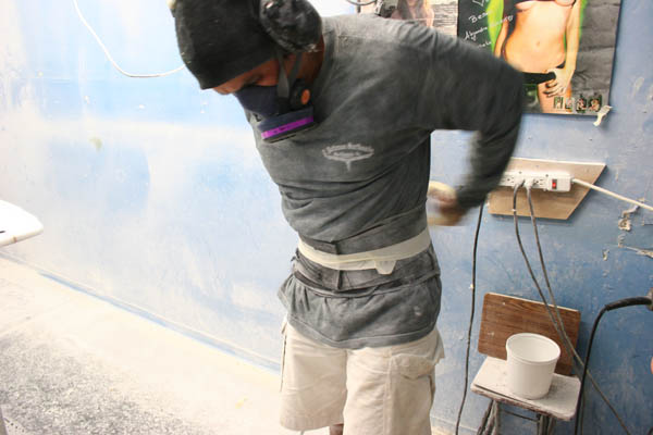 今日から何回かにわたってカルロスによるサンディングの様子をお伝えします。