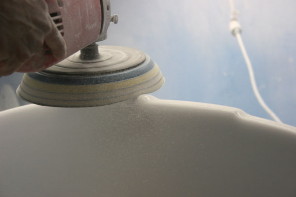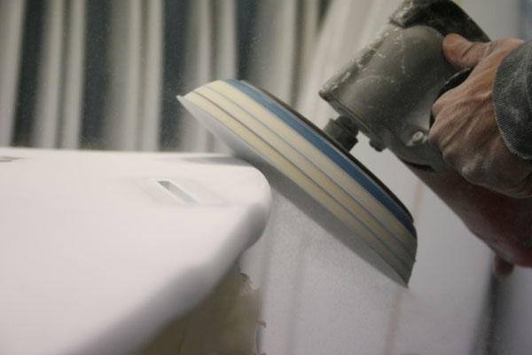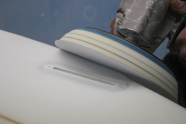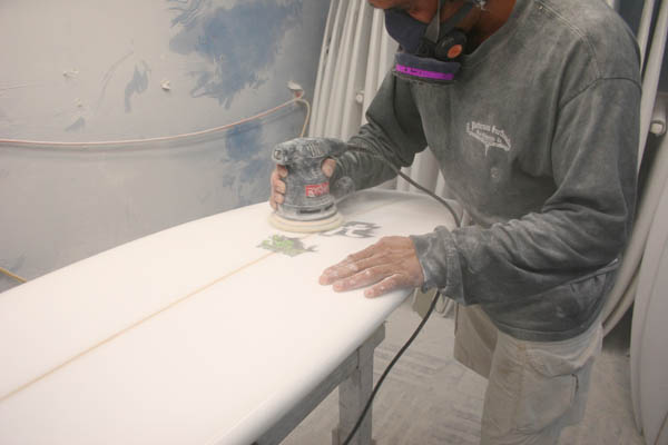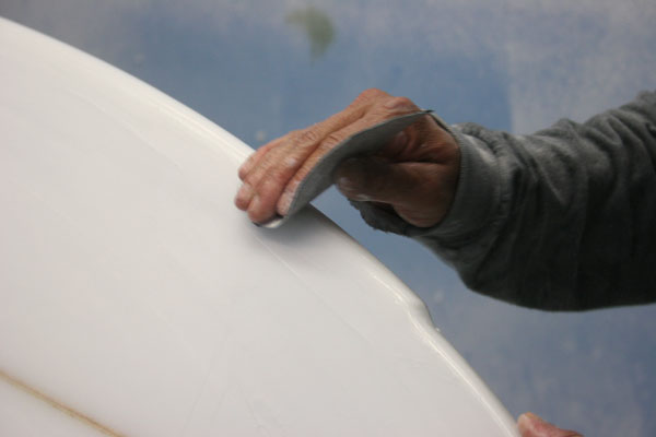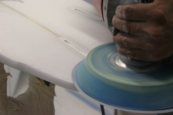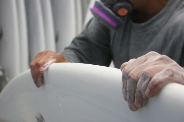 そして最終工程に入る前にボード全体を手のひらの感触で確かめ、微妙なところを手で仕上げていきます。