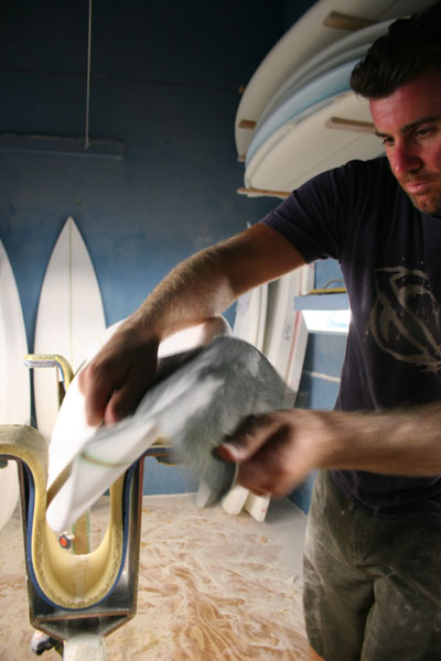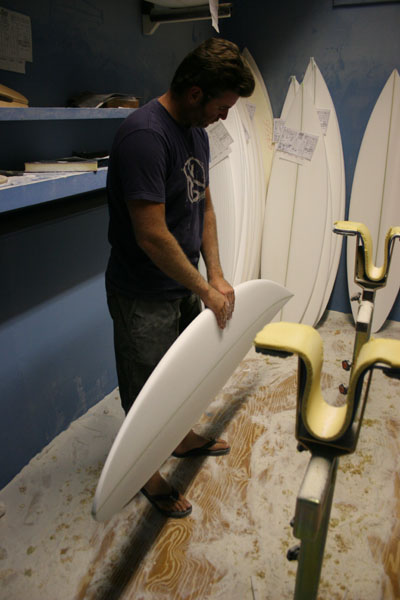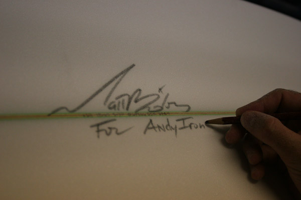 実は先日、メイヘムのシェイプルームで、そのフランス用のアンディ・アイアンズのボードをシェイプしているところを撮影できたのでご紹介します。