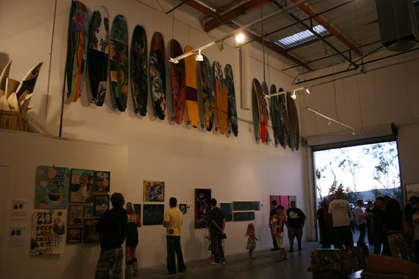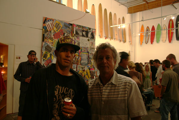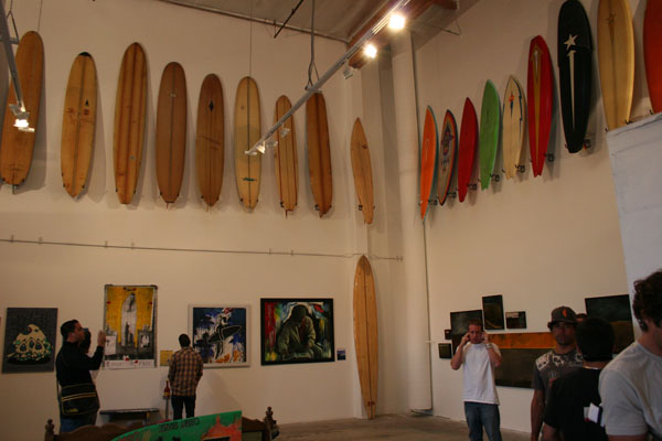 下にはハービーのアートが、そしてその上には超貴重なお宝サーフボードが並び、アーティスト、ハービーのセンスが充満したとてもすばらしい光景でした。夜が更けるにしたがいヒートアップ!