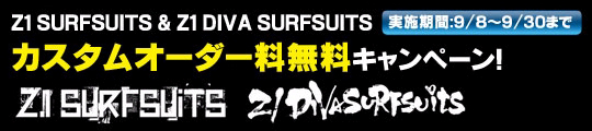 Z1 SURFSUITS & Z1 DIVA SURFSUITS カスタムオーダー料無料キャンペーン開始のお知らせ!