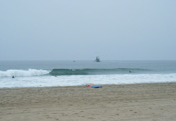 早朝から南風が吹きはじめ、面は少し荒れており、うねりはよじれ気味。