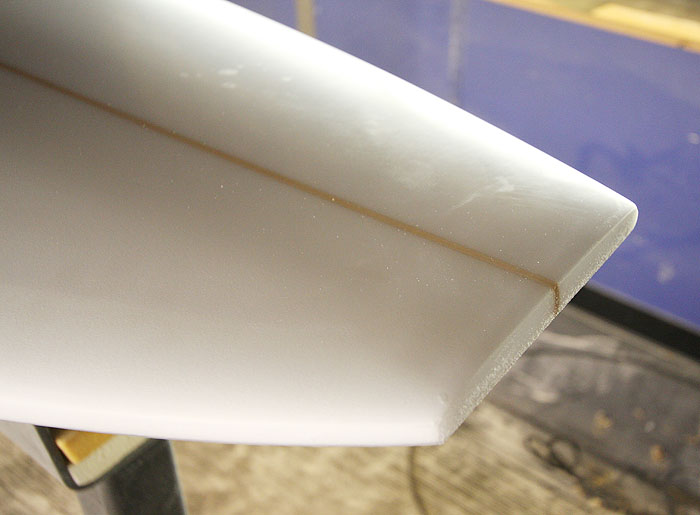 ストリンガー上の厚みをそのまま保つようなかたちでレイル際まで持っくる厚みのあるデザイン。
