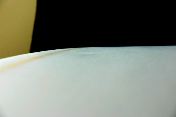 特に掘れ上がるリーフブレイク系の波質では、薄いレイルは波面を噛み過ぎて、巻き上げられやすくなってしまうので、(特にレイルは)あまり薄くしすぎず、パフォーマンス系ショートボードの厚みと同じ~