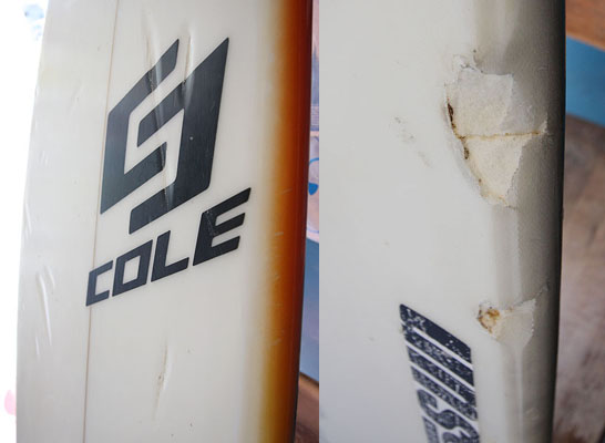 世界でもトップクラスのエアリストであるカールソンに使い込まれたボードはこのとおり。