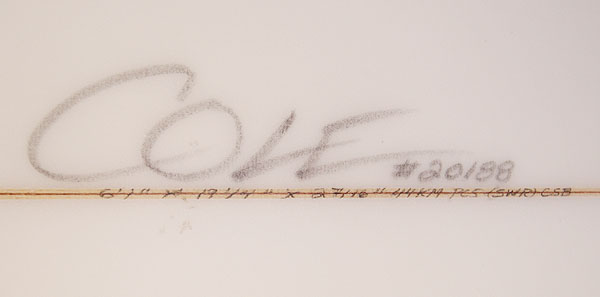 その中のサーフボード特集で登場していた、ライアン・カールソン(RYAN CARLSON)のファイアーフライをコールのショップで発見。