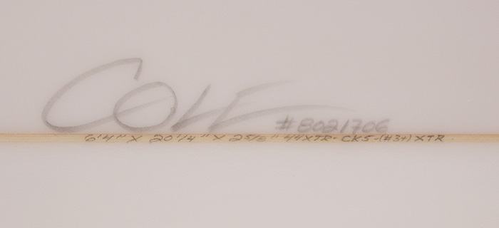 C8030609 6'4" 18 1/2" 2 1/4" ROUNDPIN FCS5FIN グラブコンケイブ Polyester SOLD $850 プレシェイプ完了