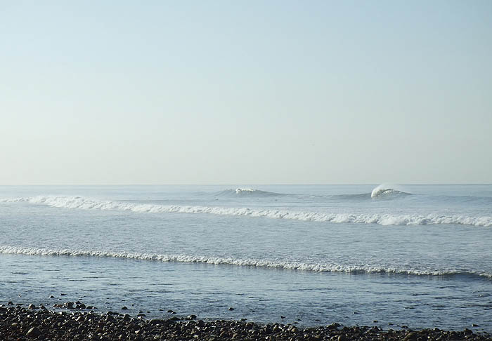 南南西と西北西のコンボスウェルで平均胸、セットで頭サイズの朝はオフショアが吹くグラッシーコンディション。