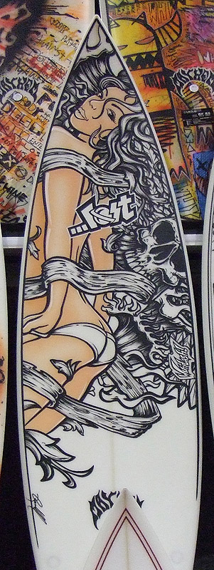 後ろにあるボードは、超人気のレトロ系2モデルKISSING FISH と FLYING FISH。
