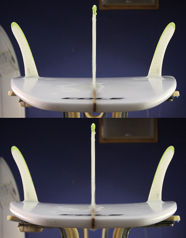 ロッカーは掘れ気味の波にも、しっかりと対応できるように十分にフリップ。