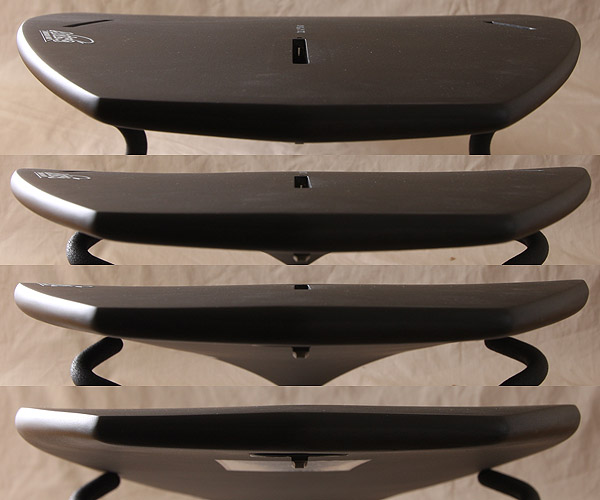 深めのダブルコンケイブが左右のレイルの出し入れをスムーズにする効果があり、