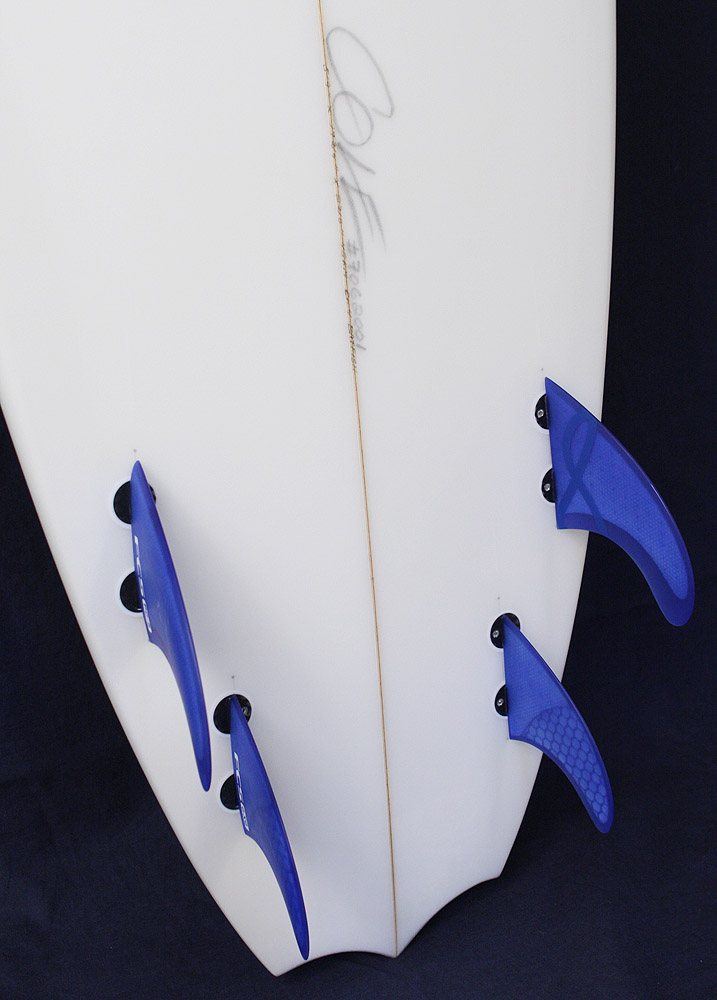 フィッシュ系のボードといっても、ツインフィンベース+スタビライザーとは違った、より強いドライブ感が得られて、こちらもオススメ。