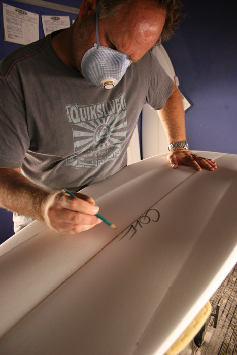 コールのマネジャーであり、プロサーファーの”ROBO”ことジョン・ロバートソン用のシェイプに
