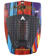 ワイドなノーズアウトライン、許容範囲に広いボリュームのあるレイル、セミフラットデッキ、そして最大の特徴であるワイドのロケットテイル。