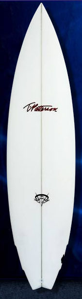 ご存知GAVIN BESCHENのシグネチャー・モデル。他のT.PATTERSONのモデルよりもやや長め、細めでストレートなアウトラインが大きな特徴。この追加された長さに狭いアウトラインという絶妙なバランスによりレイルを沈めた時のドライブ感、生み出される大きなパワーを味わうと中毒になることだろう。シングル~ダブルコンケイブ、やや強めのロッカーで頭以上のサイズのある掘れ気味の波で最高の性能を発揮、標準装備のスカッシュテイルで縦へのパンチも抜群のモデル。長いターンをされるサーファーにはさらなる真価を発揮する。